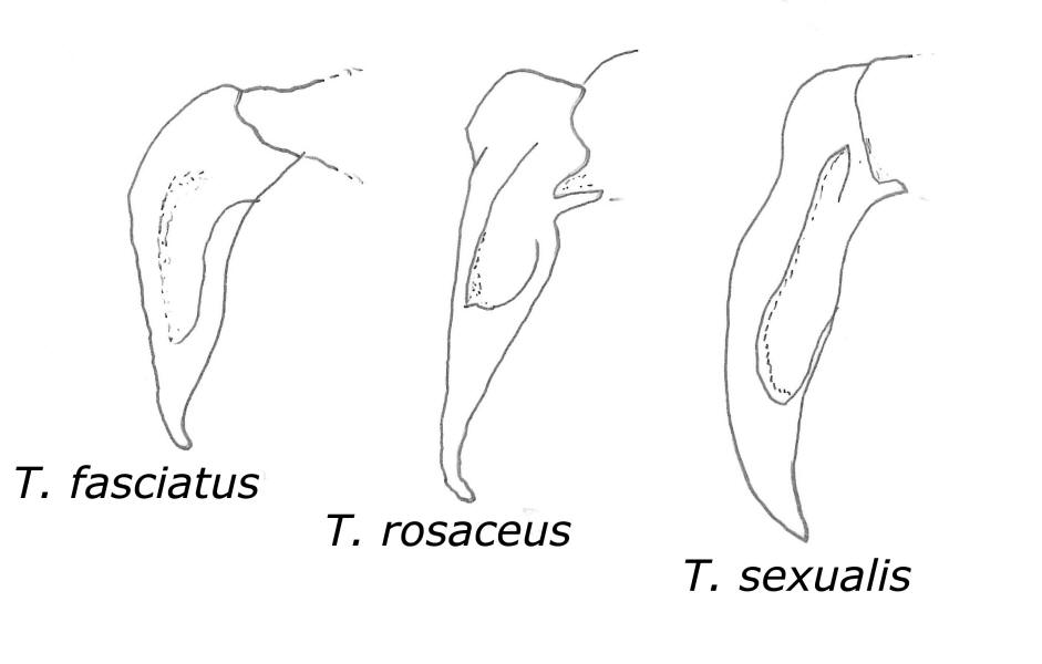 L’identificazione dei Trichius italiani può comportare alcune difficoltà. L’unica specie facilmente distinguibile è il T. fasciatus, non solo per i caratteri indicati nelle chiavi (il pigidio troncato nelle femmine e la forma delle mesotibie nei maschi), ma anche per il pattern di colorazione elitrale, che è decisamente costante, con la banda gialla che non raggiunge mai la base delle elitre. Più complessa l’identificazione delle altre due specie in quanto i caratteri indicati nelle chiavi (le tacche bianche addominali) sono di difficile osservazione (spesso il grasso e l’umidità le rendono difficili da distinguere). Il pattern di colorazione elitrale, talvolta utilizzato da alcuni autori (nel T. rosaceus l’intera sutura elitrale e il bordo dello scutello sarebbero ricordati di nero, mentre in T. sexualis la bordatura nera sarebbe limitata al terzo apicale della sutura) non è un carattere del tutto affidabile. L’unico carattere veramente affidabile è costituito dai parameri dei genitali maschili. A tale proposito va segnalata la confusione regnante nella letteratura, in quanto, a causa probabilmente di un refuso, in alcuni testi (es. Janssens, 1960) le didascalie degli edeagi di T. sexualis e T. rosaceus sono state invertite. Le illustrazioni riportate da Baraud (1979) e Baraud & Paulian (1982) sono invece corrette. Approfondimenti: PAULIAN, R. & BARAUD, J. 1982. Faune de France. II: Lucanoidea et Scarabeoidea. Paris, Lechevalier, 592 p. |
