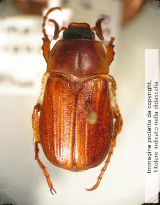Amphimallon gianfranceschii. maschio Puglia, Otranto (LE) loc. Torre S. Emiliano, 30.V.1965, ore 18.15-18.45 leg. Dellacasa (Coll. Dellacasa, Genova)