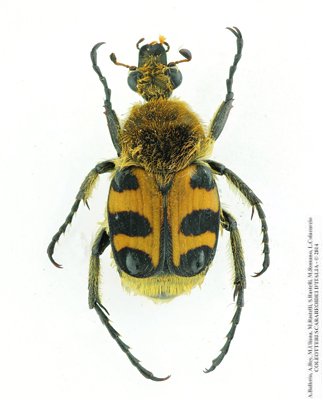 L’identificazione dei Trichius italiani può comportare alcune difficoltà. L’unica specie facilmente distinguibile è il T. fasciatus, non solo per i caratteri indicati nelle chiavi (il pigidio troncato nelle femmine e la forma delle mesotibie nei maschi), ma anche per il pattern di colorazione elitrale, che è decisamente costante, con la banda gialla che non raggiunge mai la base delle elitre. Più complessa l’identificazione delle altre due specie in quanto i caratteri indicati nelle chiavi (le tacche bianche addominali) sono di difficile osservazione (spesso il grasso e l’umidità le rendono difficili da distinguere). Il pattern di colorazione elitrale, talvolta utilizzato da alcuni autori (nel T. rosaceus l’intera sutura elitrale e il bordo dello scutello sarebbero ricordati di nero, mentre in T. sexualis la bordatura nera sarebbe limitata al terzo apicale della sutura) non è un carattere del tutto affidabile. L’unico carattere veramente affidabile è costituito dai parameri dei genitali maschili. A tale proposito va segnalata la confusione regnante nella letteratura, in quanto, a causa probabilmente di un refuso, in alcuni testi (es. Janssens, 1960) le didascalie degli edeagi di T. sexualis e T. rosaceus sono state invertite. Le illustrazioni riportate da Baraud (1979) e Baraud & Paulian (1982) sono invece corrette. Approfondimenti: PAULIAN, R. & BARAUD, J. 1982. Faune de France. II: Lucanoidea et Scarabeoidea. Paris, Lechevalier, 592 p. |