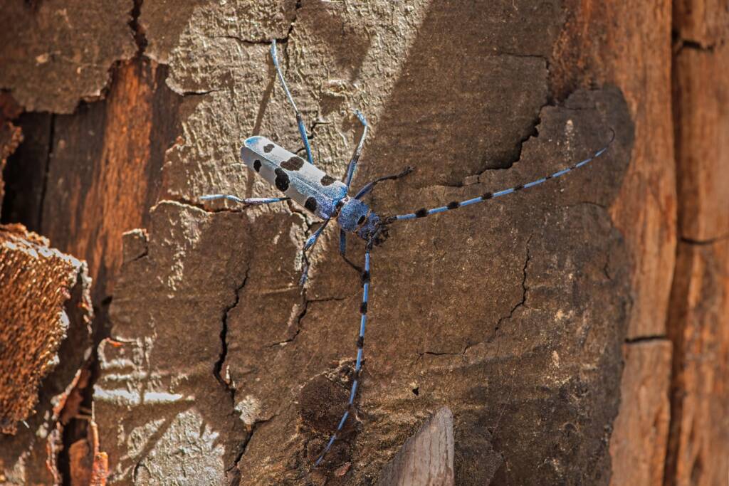 Momento clou della giornata è stata la visita a un sito di particolare pregio naturalistico, la cui ubicazione non viene divulgata per ragioni di tutela, dove i partecipanti hanno potuto osservare centinaia di esemplari di “Rosalia alpina, raro coleottero cerambicide protetto a livello europeo. La straordinaria bellezza di questa specie, caratterizzata da eleganti livree azzurre e nere, ha suscitato emozioni uniche ai presenti, rafforzando la consapevolezza dell’importanza di preservare habitat così delicati e preziosi.